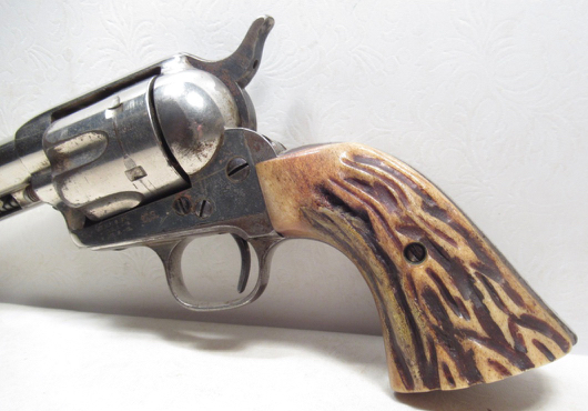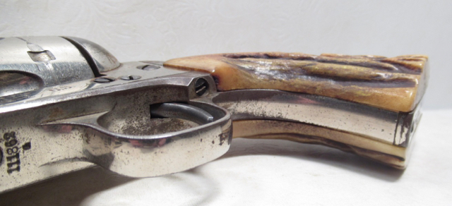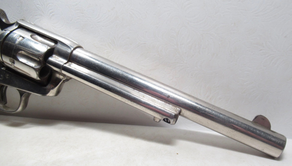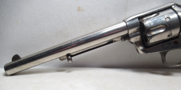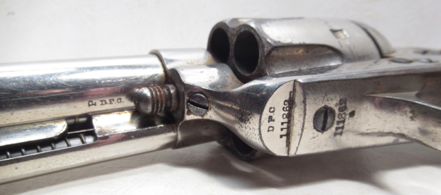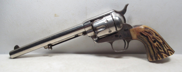 Colt Single Action Army Revolver; Serial No. 111862; .45 Long Colt Caliber; 7-1/2 inch Barrel; Nickel Plated; David F. Clark Inspected; 'U.S.' Marked on Left Side of Frame; Nice Jig Bone Grips; 'D.F.C.' Marked on Barrel, Frame, and Cylinder; 'P' Proof Appears on Bottom of Barrel and Cylinder; Nickel Plated U.S. Cavalry Models are a Hot Topic of Debate Among Colt and U.S. Military Collectors; Four Current Basic Theories Exist on these Revolvers and are as Follows: 1. Issued to Indian Scouts and Police; 2. Special Order 'Officers' Revolvers; 3. Surplus State of Virginia Militia Revolvers Sold to and Nickel Plated by Colt or Commercial Retailers; 4. U.S. Navy Revolvers; History Relating to this Ongoing Debate can be Found on Pages 249-258 of 'A Study of Colt Single Action Army Revolver'; Butt of Revolver is Inscribed with a Large 'C' in Old English Font; Good Action; Very Strong Bore with light even frosting throughout; Proper 2nd Model Housing; Historic 141 Year-Old Colt U.S. Cavalry Model Revolver; See All Photos for Condition; No Texts; Call (254)541-5765 or Email Only; PERSONAL PROPERTY of Harold Wieser; NOTICE: We Do Not Do Any Consignments - All Items Listed are Owned by Us - NO SALES to New Jersey or New York City - Antiques Only to Massachusetts and California; NOTE: All Modern Firearms Must Go to FFL Dealer who will Accept From Individual with Texas Driver License; Price: $9,975 + S&H; Payment Address: Harold Wieser - 1466 U.S. Hwy 77 - Rosebud, TX 76570; SEND PAYMENTS VIA USPS PRIORITY MAIL; BEWARE of SCAMS!!! - DO NOT SEND MONEY or CORRESPONDENTS ELECTRONICALLY UNLESS YOU HAVE SPOKEN to HAROLD WIESER FIRST! (254)541-5765