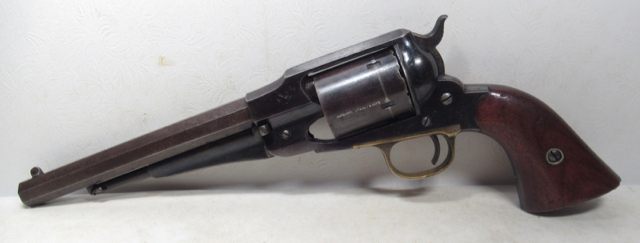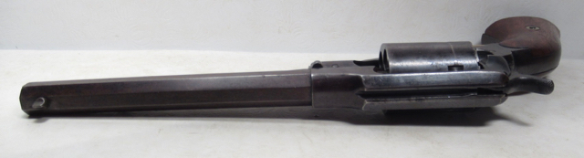 Remington New Army Conversion Revolver; Serial No. 82948; Made 1860s; .44 Rimfire Caliber; 8 inch Barrel; Revolver Retains Most of the Original Blue Finish on Frame; Barrel Mostly Brown Patina; Nice Wood Grips with Most of the Original Varnish Present; Good Action; Excellent Bore; Nice 155+ Year-Old Antique Remington Revolver; See All Photos for Condition; No Texts; Call (254)541-5765 or Email Only; PERSONAL PROPERTY of Harold Wieser; NOTICE: We Do Not Do Any Consignments - All Items Listed are Owned by Us - NO SALES to New Jersey or New York City - Antiques Only to Massachusetts and California; NOTE: All Modern Firearms Must Go to FFL Dealer who will Accept From Individual with Texas Driver License; Price: $3,975 + $100 S&H; Payment Address: Harold Wieser - 1466 U.S. Hwy 77 - Rosebud, TX 76570; SEND PAYMENTS VIA USPS PRIORITY MAIL; BEWARE of SCAMS!!! - DO NOT SEND MONEY or CORRESPONDENTS ELECTRONICALLY UNLESS YOU HAVE SPOKEN to HAROLD WIESER FIRST! (254)541-5765