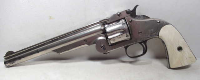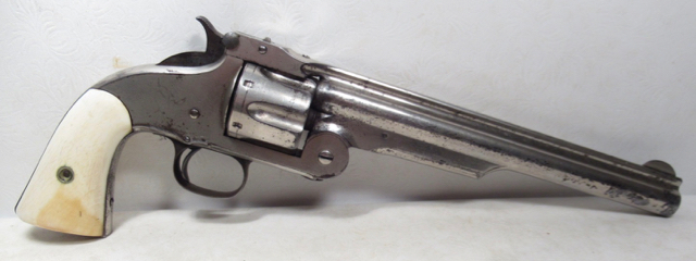 Smith & Wesson 2nd Model American Revolver; Serial No. 23218; Made 1870s; .44 American Caliber; 8 inch Barrel with Lots of Original Nickel Finish Present; Nice Original Ivory Grips; Tight Lock-up; Good Action; Bore is Dark with some pitting but Rifling Visible; Great 145+ Year-Old Smith & Wesson Revolver; See All Photos for Condition; No Texts; Call (254)541-5765 or Email Only; PERSONAL PROPERTY of Harold Wieser; NOTICE: We Do Not Do Any Consignments - All Items Listed are Owned by Us - NO SALES to New Jersey or New York City - Antiques Only to Massachusetts and California; NOTE: All Modern Firearms Must Go to FFL Dealer who will Accept From Individual with Texas Driver License; Price: $5,475 + $100 S&H; Payment Address: Harold Wieser - 1466 U.S. Hwy 77 - Rosebud, TX 76570; SEND PAYMENTS VIA USPS PRIORITY MAIL; BEWARE of SCAMS!!! - DO NOT SEND MONEY or CORRESPONDENTS ELECTRONICALLY UNLESS YOU HAVE SPOKEN to HAROLD WIESER FIRST! (254)541-5765