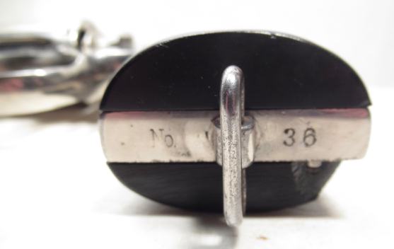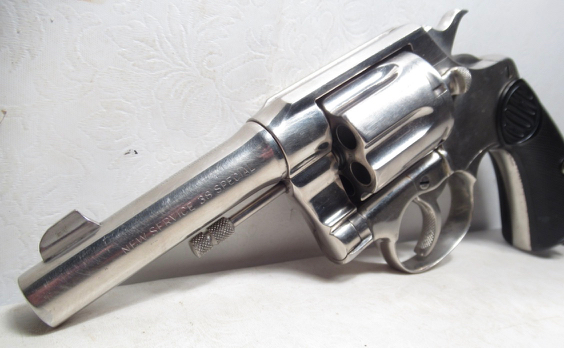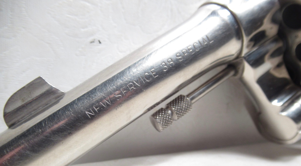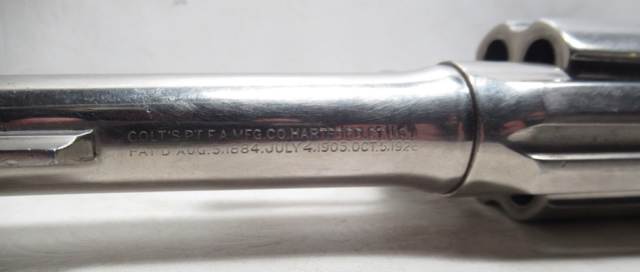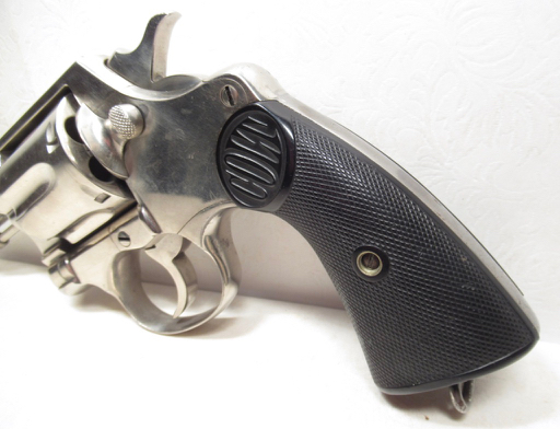 Colt New Service Model Revolver; Serial No. 347712; Per Included Factory Letter: .38 Caliber with 4 inch Barrel and Nickel Finish; Factory Engraved 'Texas Public Safety Dept' on the Backstrap and the Number '36' Stamped on Butt of Revolver; Shipped September 17, 1937 to the State of Texas Factory Order #19121/286 - Part of a 50 Gun Shipment; Backstrap Markings have been removed; Number 36 Still on Butt of Revolver; Refinished Nickel; Decent Grips with one chip on right panel; Perfect Action and Bore; This is the First Style Revolver Shipped to Texas D.P.S.; 89 Year-Old Historic Colt Revolver; See All Photos for Condition; No Texts; Call (254)541-5765 or Email Only; PERSONAL PROPERTY of Harold Wieser; NOTICE: We Do Not Do Any Consignments - All Items Listed are Owned by Us - NO SALES to New Jersey or New York City - Antiques Only to Massachusetts and California; NOTE: All Modern Firearms Must Go to FFL Dealer who will Accept From Individual with Texas Driver License; Price: $1,775 + $50 S&H; Payment Address: Harold Wieser - 1466 U.S. Hwy 77 - Rosebud, TX 76570; SEND PAYMENTS VIA USPS PRIORITY MAIL; BEWARE of SCAMS!!! - DO NOT SEND MONEY or CORRESPONDENTS ELECTRONICALLY UNLESS YOU HAVE SPOKEN to HAROLD WIESER FIRST! (254)541-5765