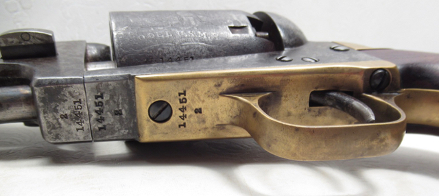 Colt Model 1848 Percussion Revolver; Serial No. 14451; .44 Caliber; 7-1/2 inch Barrel; Outstanding Wood and Brass with a Nice Grey Patina Finish; 100% Legible Cylinder Scene; Signed by 'W.L. Ormsby'; Fantastic 170 Year-Old Civil War Era Colt Dragoon; See All Photos for Condition; No Texts; Call (254)541-5765 or Email Only; PERSONAL PROPERTY of Harold Wieser; NOTICE: We Do Not Do Any Consignments - All Items Listed are Owned by Us - NO SALES to New Jersey or New York City - Antiques Only to Massachusetts and California; NOTE: All Modern Firearms Must Go to FFL Dealer who will Accept From Individual with Texas Driver License; Price: $8,550 + $50 S&H Via USPS Priority Mail; Payment Address: Harold Wieser - 1466 U.S. Hwy 77 - Rosebud, TX 76570; SEND PAYMENTS VIA USPS PRIORITY MAIL; BEWARE of SCAMS!!! - DO NOT SEND MONEY or CORRESPONDENTS ELECTRONICALLY UNLESS YOU HAVE SPOKEN to HAROLD WIESER FIRST! (254)541-5765