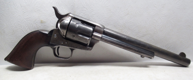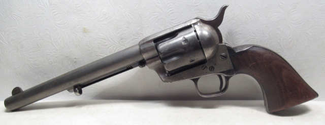 Colt Single Action Army Revolver; Serial No. 93692; Per Included Factory Letter: .45 Caliber, Blue Finish, Shipped June 15, 1883 as Part of a 100 Gun Shipment; Revolver Returned to Factory for Refurbishing and Reassembled for N.Y. Militia; 7-1/2 inch Barrel Not Shortened; Shipped Again in 1895 to N.Y. Inspector; Trigger Guard #6915; This Rare Colt Appears to be 100% Correct with Perfect Tight Action and Perfect Bore; Decent Metal Finish; 'RAC' Marked Grips; See All Photos for Condition; No Texts; Call (254)541-5765 or Email Only; PERSONAL PROPERTY of Harold Wieser; NOTICE: We Do Not Do Any Consignments - All Items Listed are Owned by Us - NO SALES to New Jersey or New York City - Antiques Only to Massachusetts and California; NOTE: All Modern Firearms Must Go to FFL Dealer who will Accept From Individual with Texas Driver License; Price: $5,500 + $50 S&H Via USPS Priority Mail; Payment Address: Harold Wieser - 1466 U.S. Hwy 77 - Rosebud, TX 76570; SEND PAYMENTS VIA USPS PRIORITY MAIL; BEWARE of SCAMS!!! - DO NOT SEND MONEY or CORRESPONDENTS ELECTRONICALLY UNLESS YOU HAVE SPOKEN to HAROLD WIESER FIRST! (254)541-5765