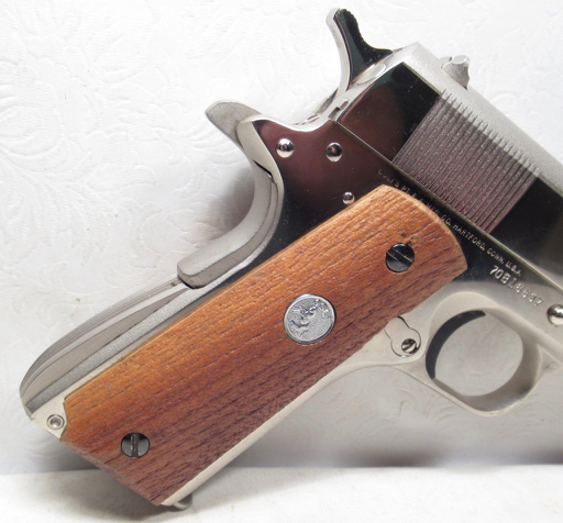 Colt 1911 Model Semi-Auto Pistol; Serial No. 70B16597; Made 1982; Near Perfect Original Nickel Metal Finish; Great Original Grips and Magazine; Perfect Action; Perfect Bore; 1911 Government Model MKIV Series 70 Semi-Auto .45 Pistol; See All Photos for Condition; No Texts; Call (254)541-5765 or Email Only; PERSONAL PROPERTY of Harold Wieser; NOTICE: We Do Not Do Any Consignments - All Items Listed are Owned by Us - NO SALES to New Jersey or New York City - Antiques Only to Massachusetts and California; NOTE: All Modern Firearms Must Go to FFL Dealer who will Accept From Individual with Texas Driver License; Price: $1,475 + $50 S&H; Payment Address: Harold Wieser - 1466 U.S. Hwy 77 - Rosebud, TX 76570; SEND PAYMENTS VIA USPS PRIORITY MAIL; BEWARE of SCAMS!!! - DO NOT SEND MONEY or CORRESPONDENTS ELECTRONICALLY UNLESS YOU HAVE SPOKEN to HAROLD WIESER FIRST! (254)541-5765