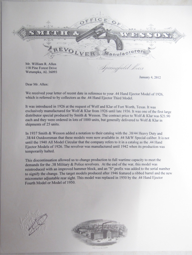 | SW393 - Texas Shipped Smith & Wesson Model of 1926 Hand Ejector .44 Revolver - Wolf & Klar Shipped in 1930 | | SW393 |